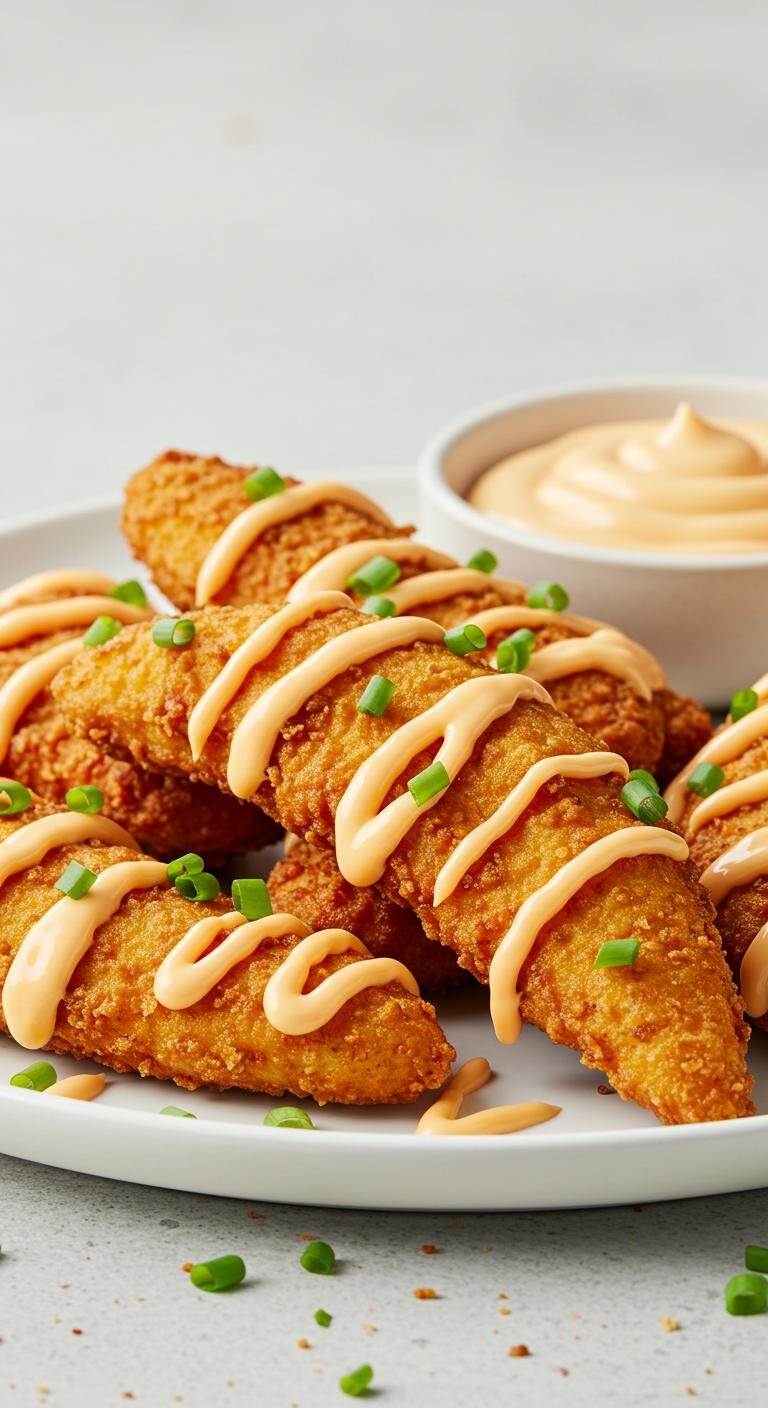 - Season chicken with salt and pepper, then coat with spicy mayo and breadcrumbs.