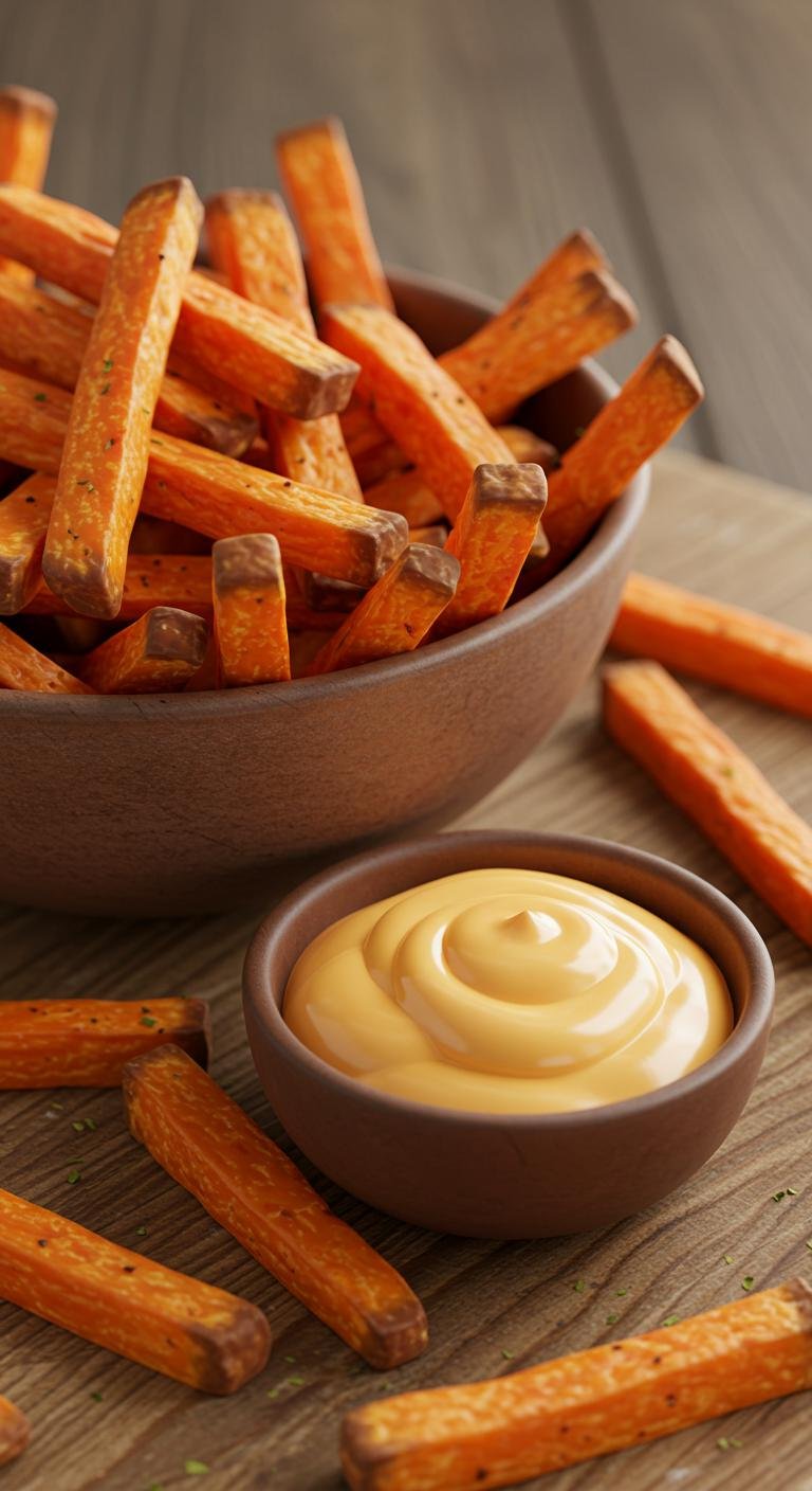 - Toss sweet potato fries with olive oil and bake for 25 minutes or until crispy.