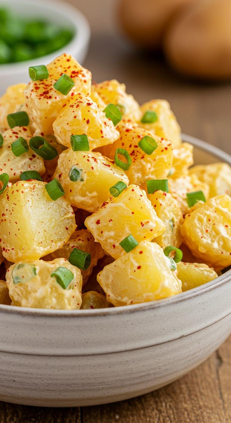 - In a bowl, combine potatoes, spicy mayo, and scallions.