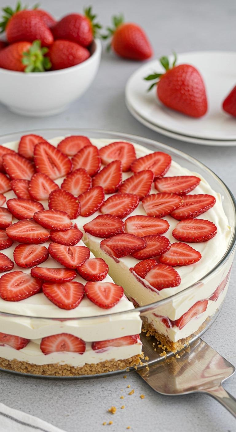 - Cool and top with fresh strawberries.