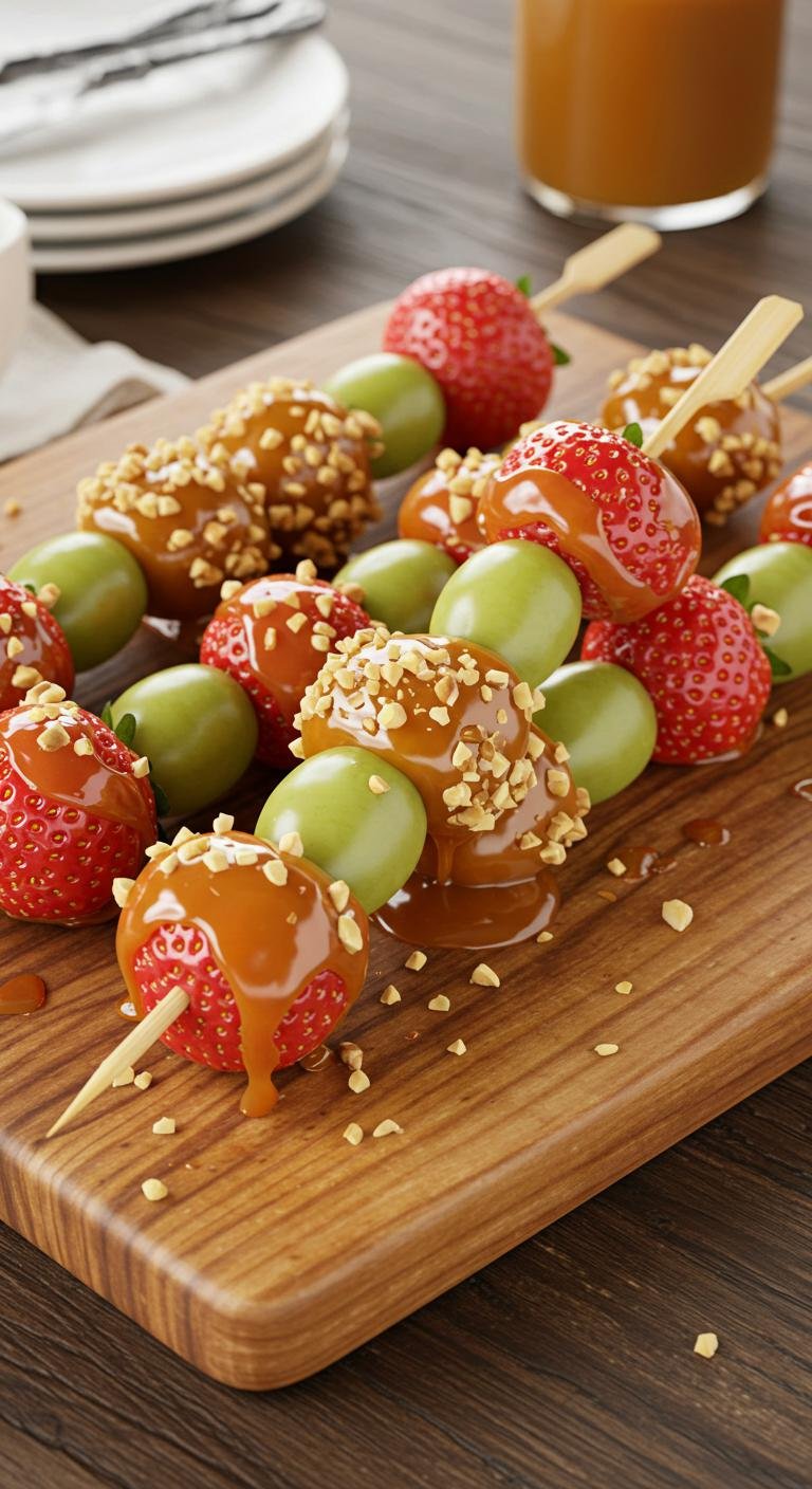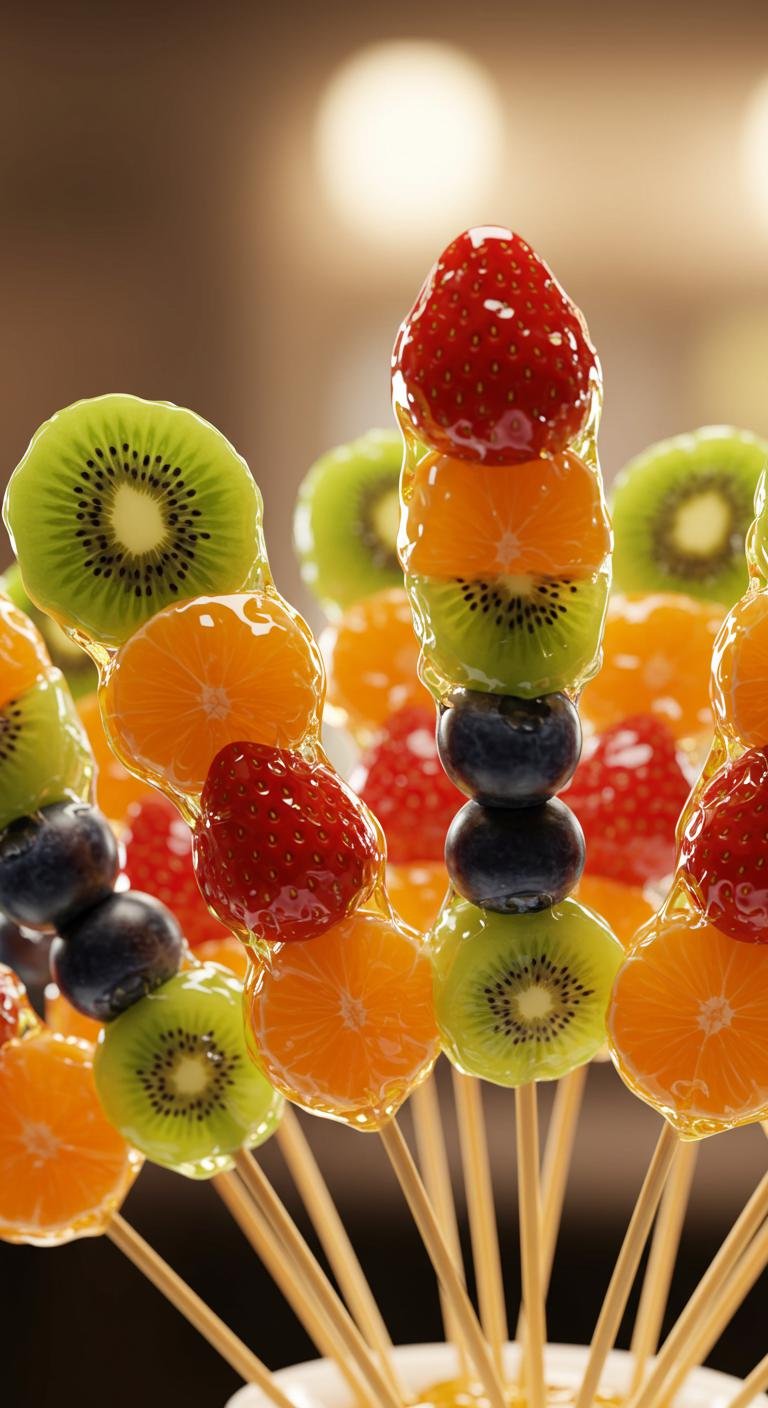 - Dip skewered berries into the syrup, allowing it to harden before serving.