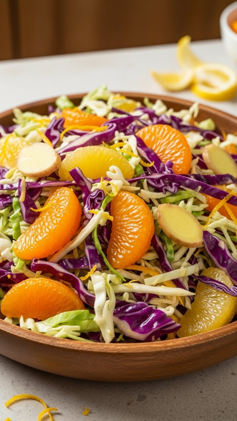 - Mix cabbage, orange segments, and ginger in a bowl.