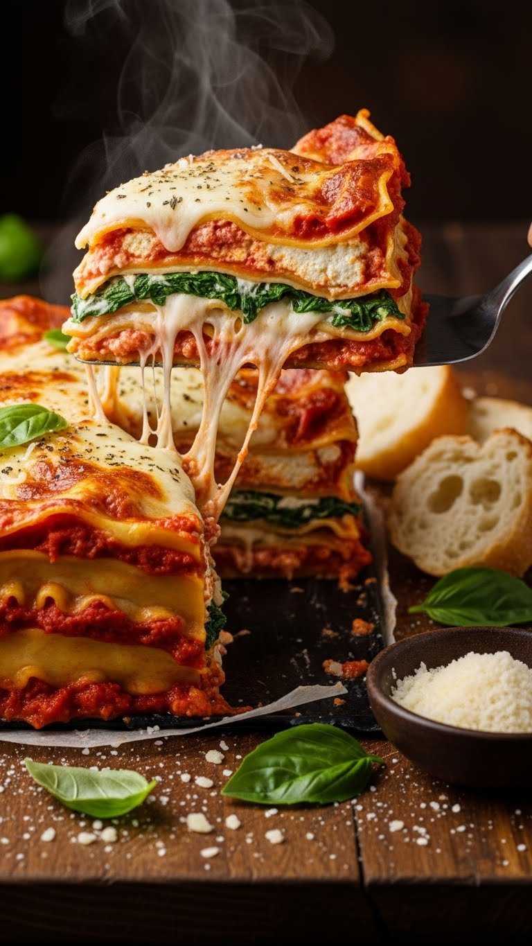 - Cook noodles according to package; layer with ricotta, vodka sauce, spinach, and mozzarella.