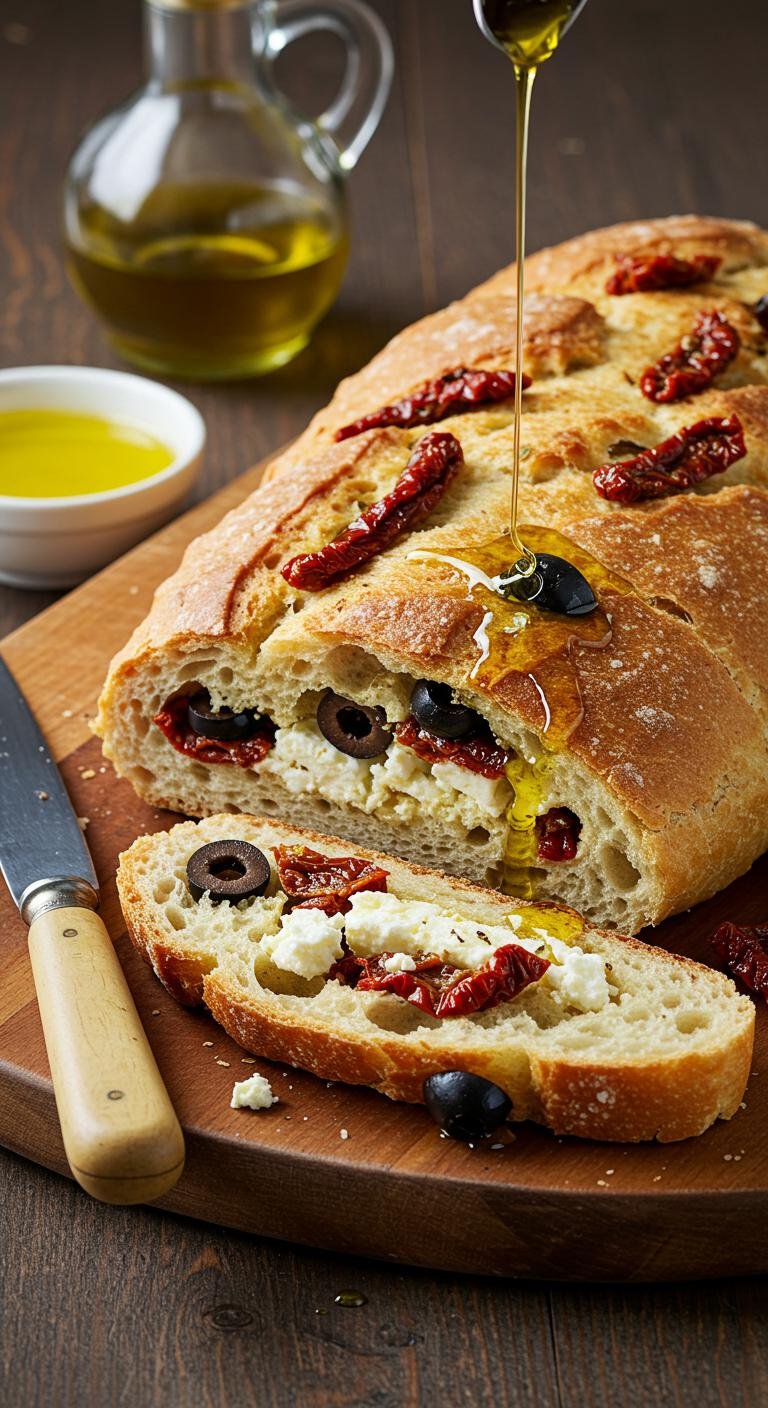 A flavorful bread infused with Mediterranean ingredients.