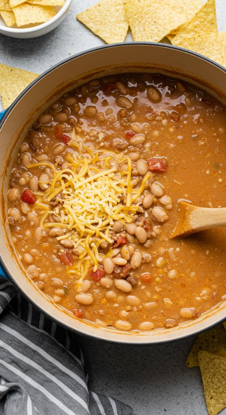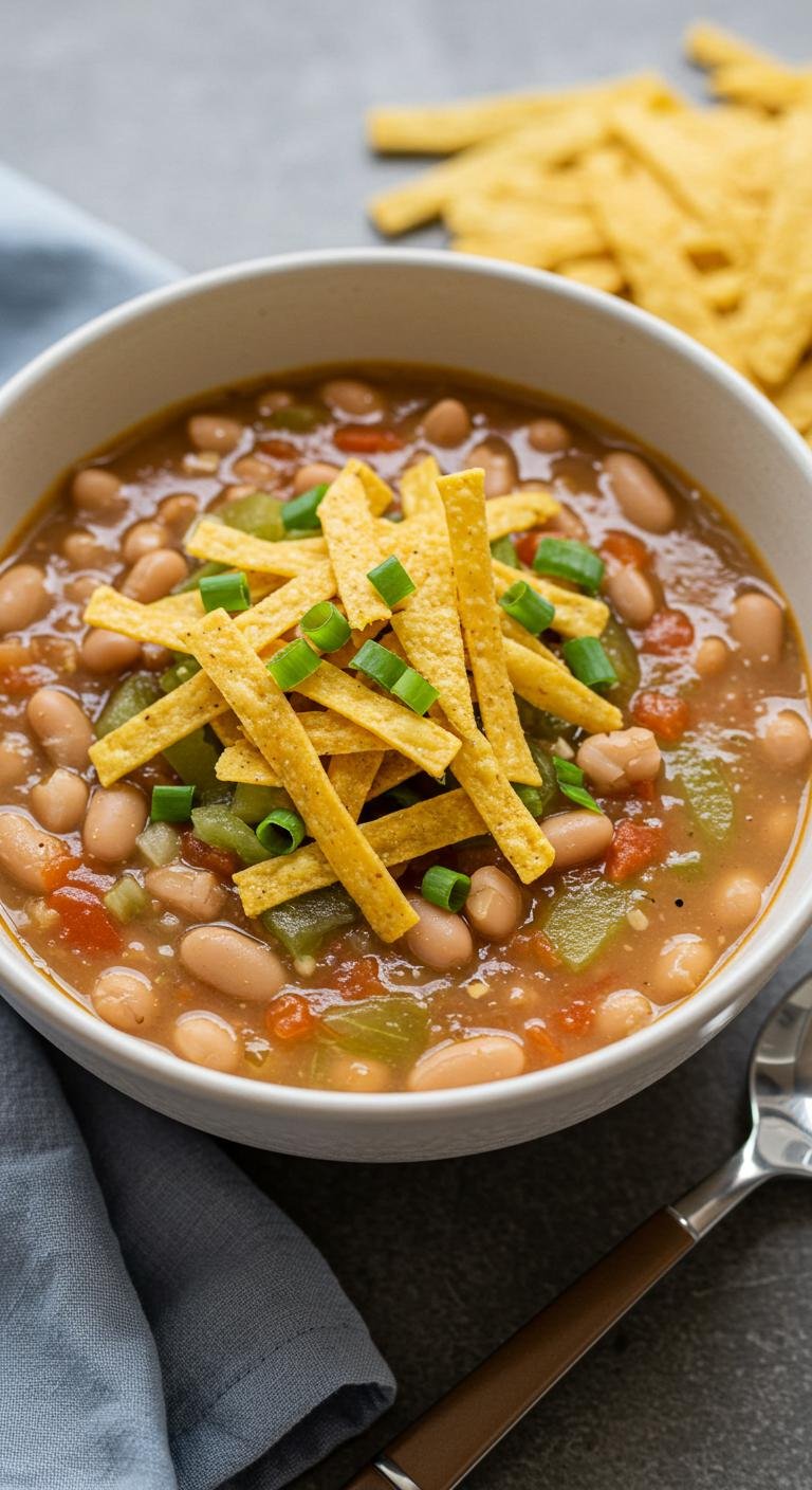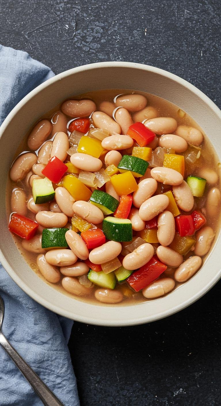 - Combine chicken, beans, broth, vegetables, and seasonings in a pot.