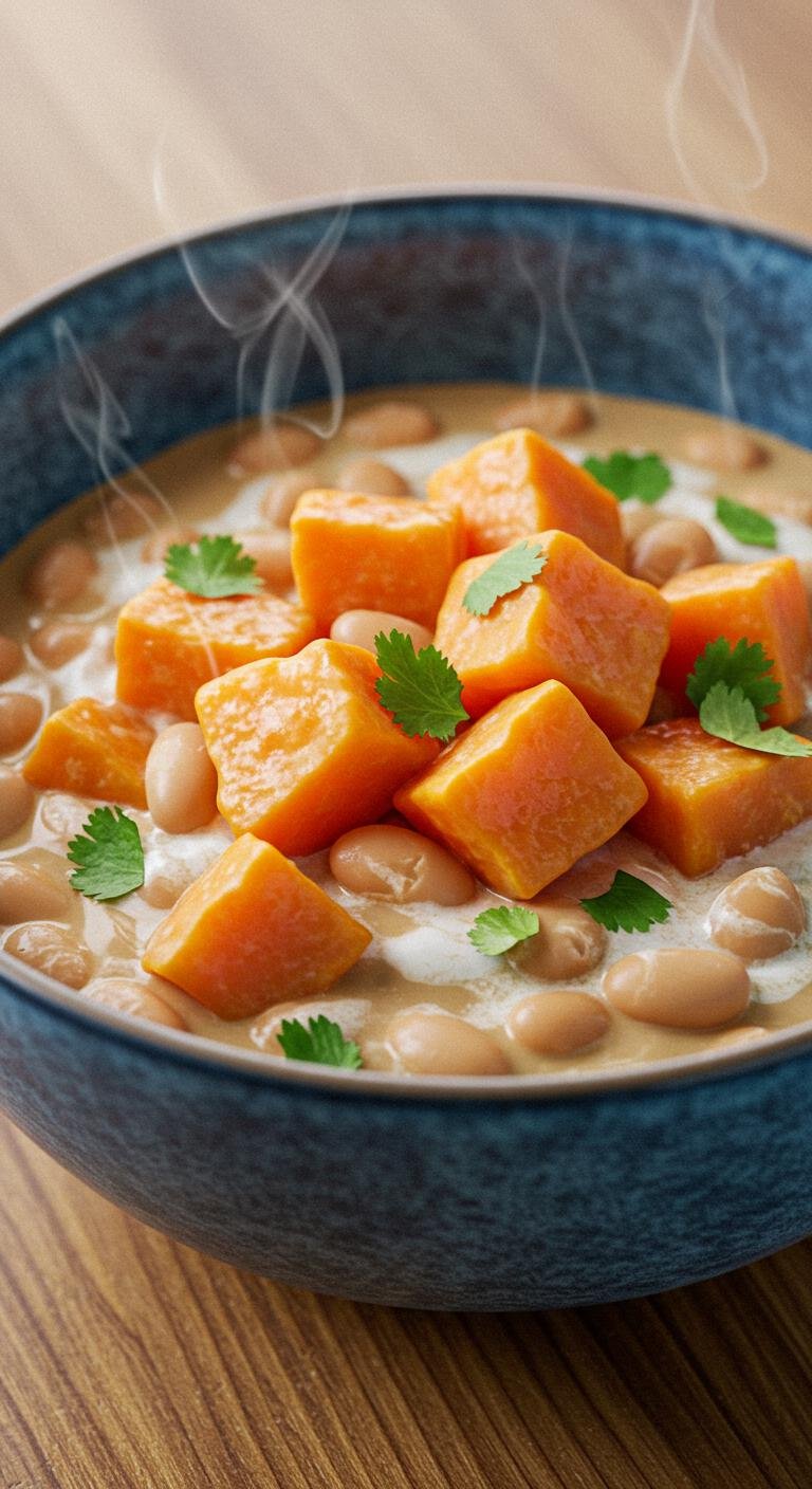 - Combine chicken, beans, broth, sweet potato, and cumin in a pot.
