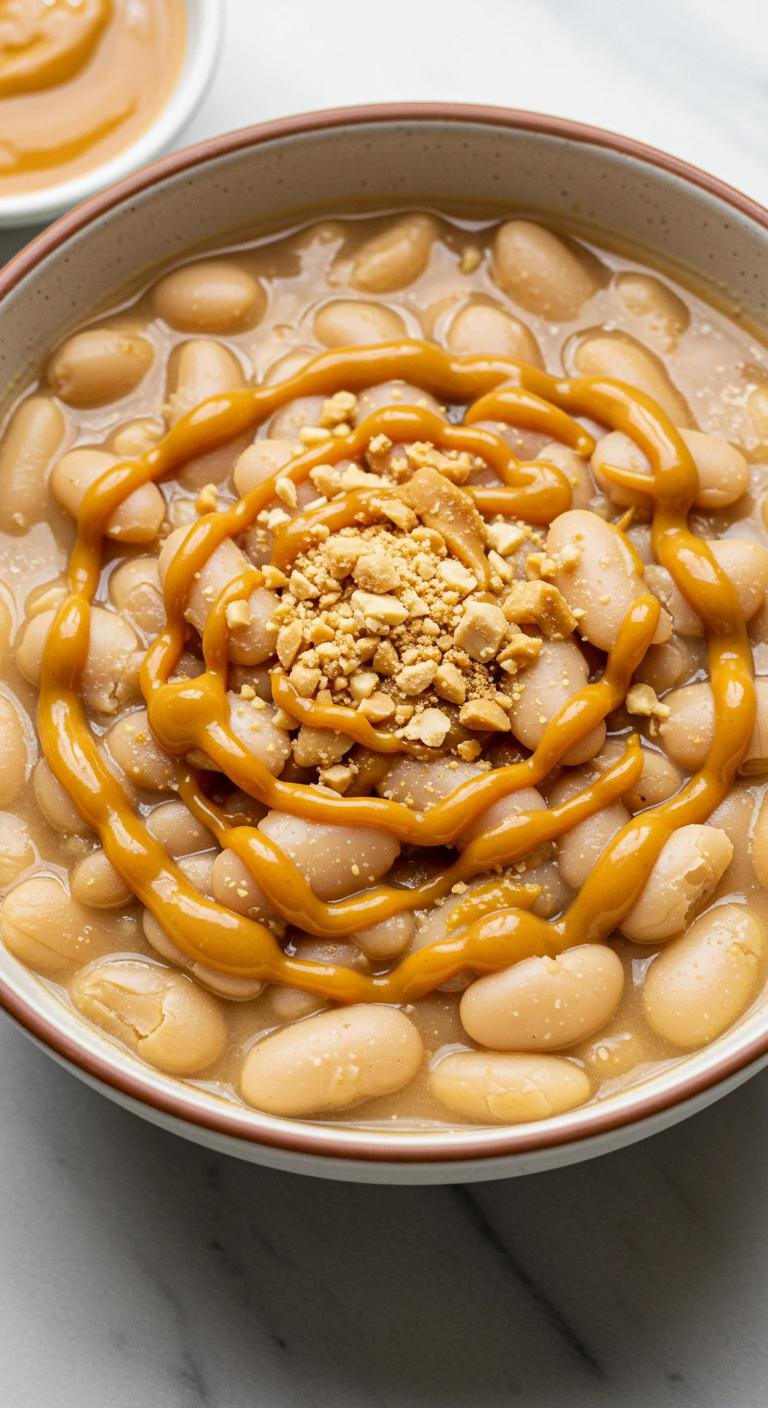 - Combine chicken, coconut milk, peanut butter, beans, broth, and soy sauce in a pot.
