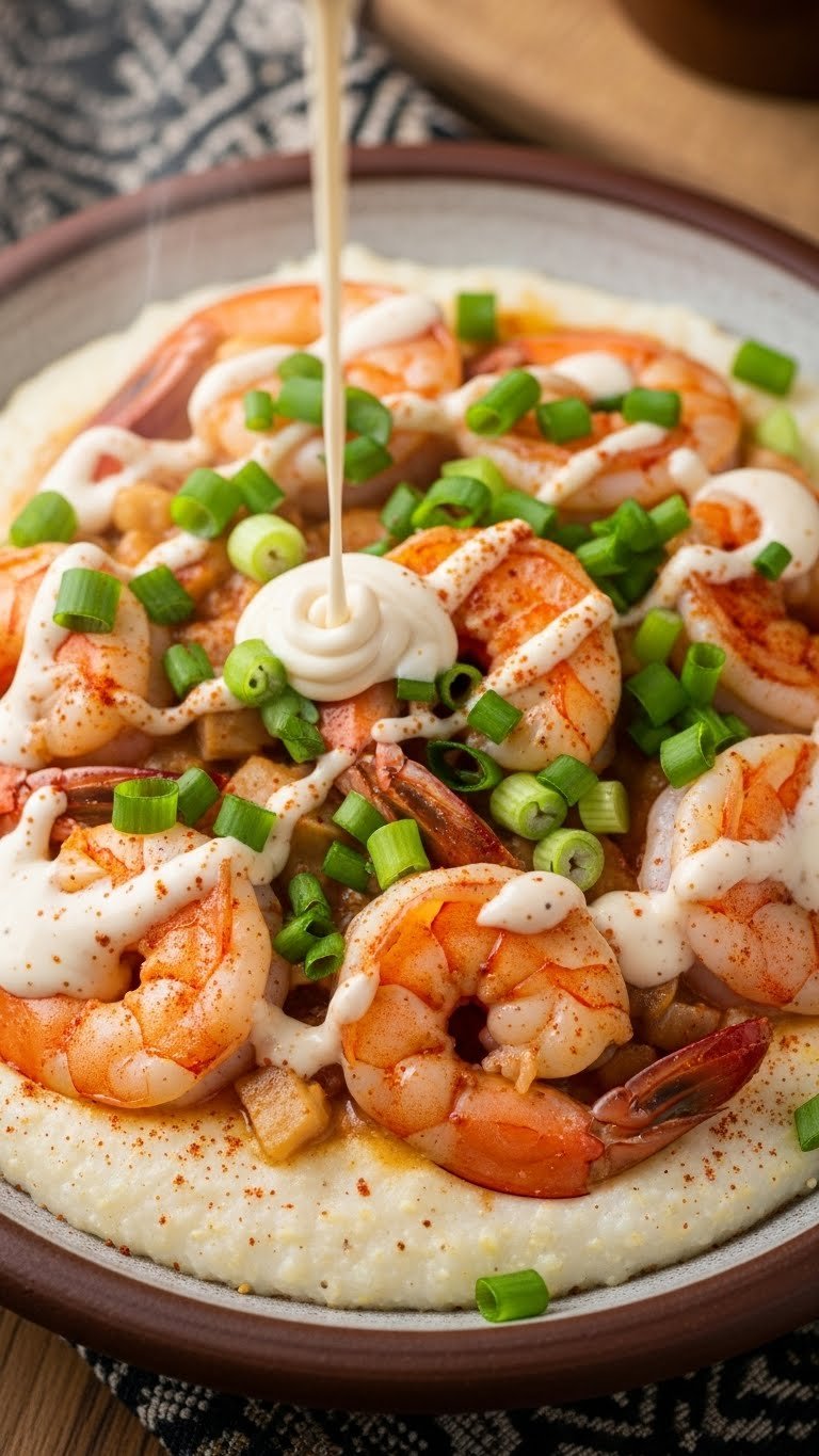 7. Shrimp and Grits with White Sauce