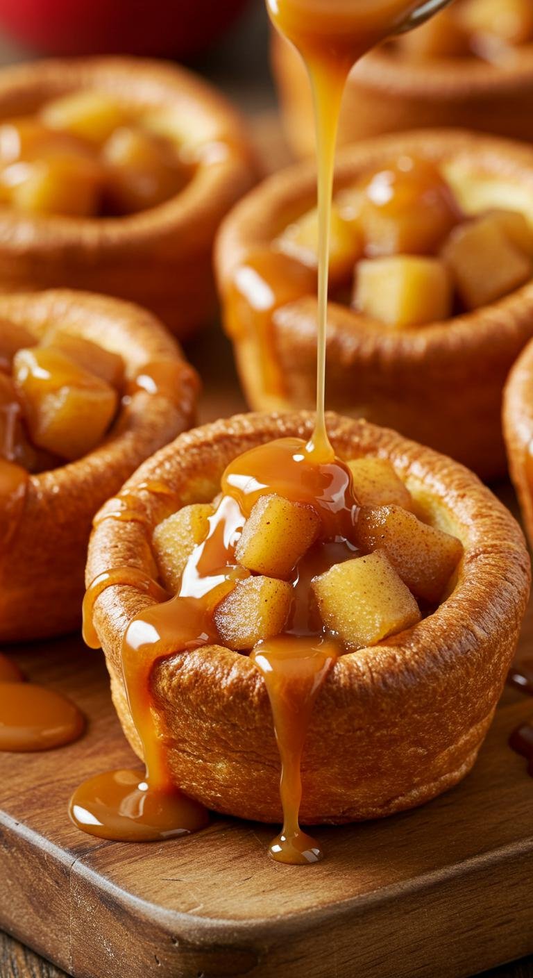 - Bake for 20-25 minutes until golden, drizzle with caramel.